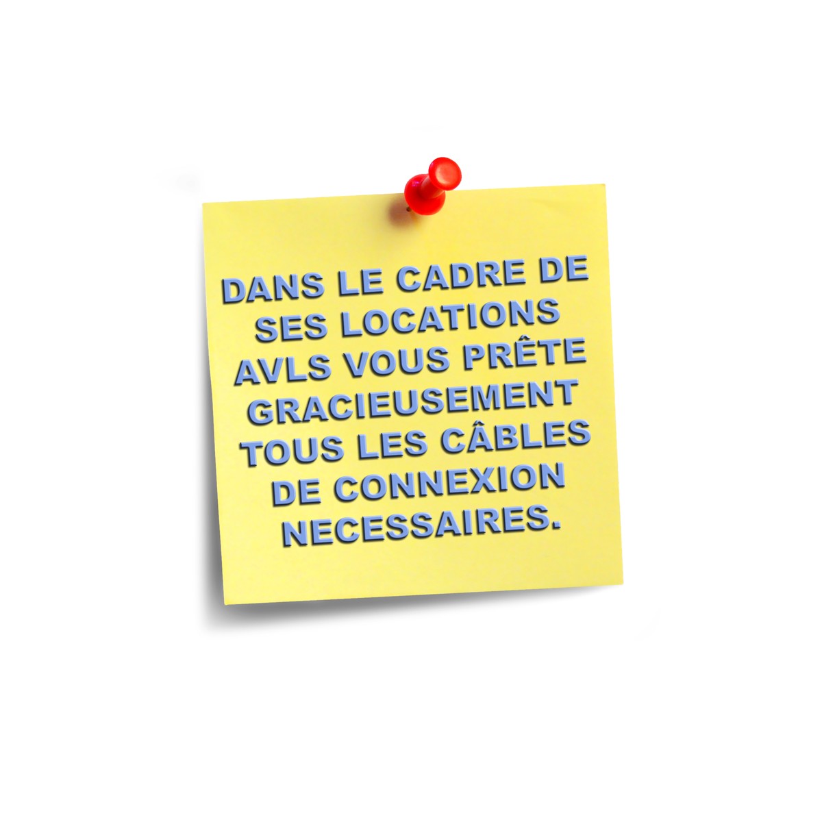 Nos tarifs sont forfaitaires et incluent les câbles standards sur demande. LES FRAIS ET CONDITIONS DE TRANSPORT NE S’APPLIQUENT PAS AUX MATÉRIELS DE LOCATION.