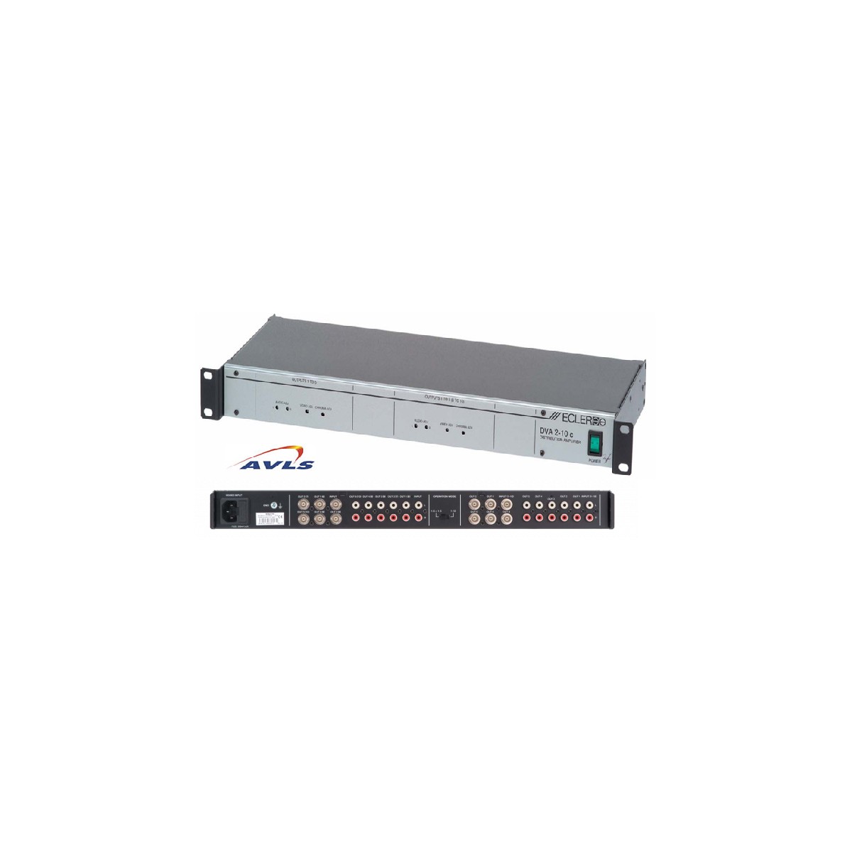 Distributeur audio/vidéo ECLER DVA 2-10 C / 1 entrée BNC et RCA stéréo vers 10 sorties / Rack 19 pouces 1 U (44,5 mm)