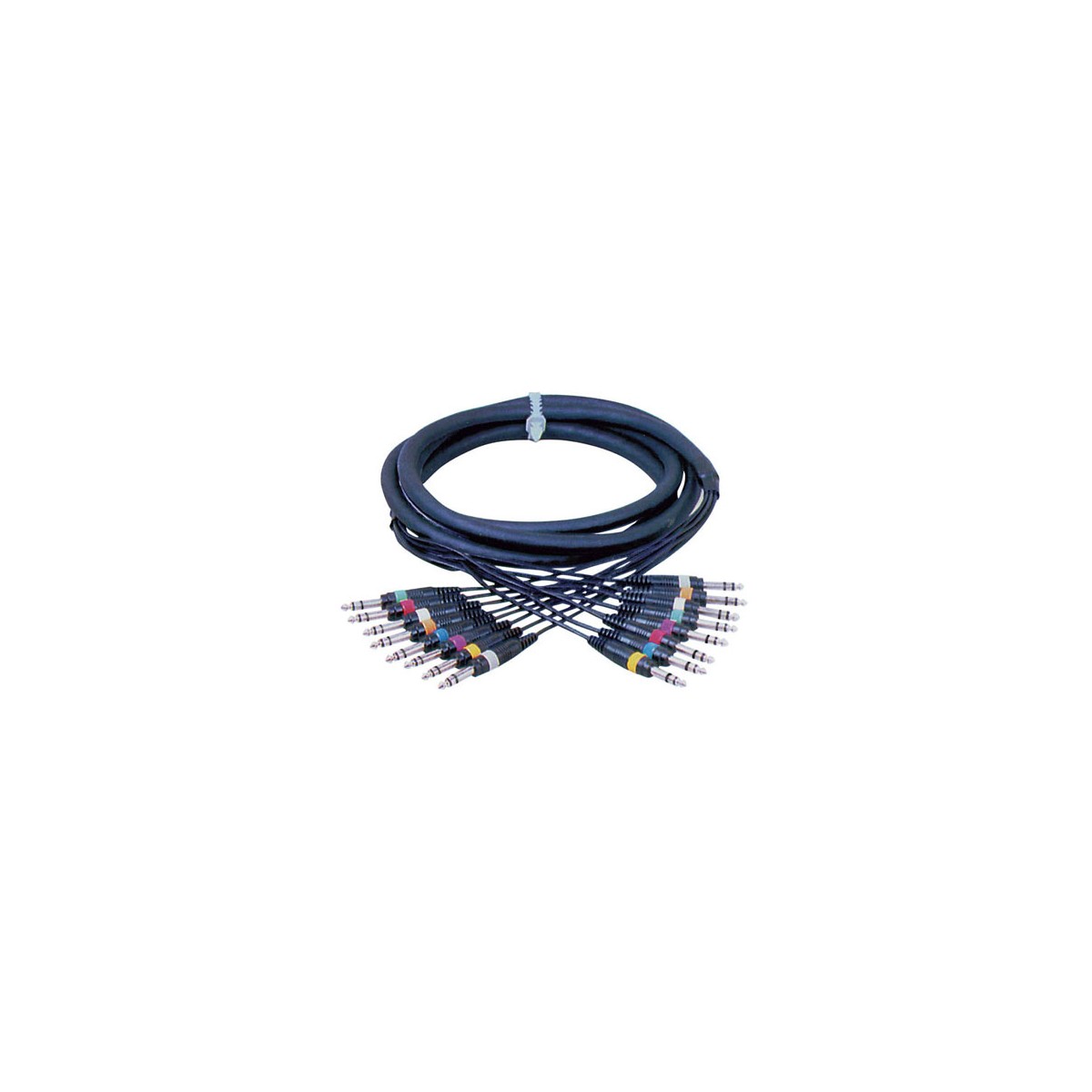 Ce câble audio multi-canaux est conçu pour la transmission de signaux audio analogiques symétriques sur huit canaux distincts. Il est équipé de huit connecteurs Jack 6,35 mm mâles symétriques (TRS) d’un côté et de huit connecteurs identiques de l’autre, permettant la connexion simultanée de plusieurs signaux ligne équilibrés entre équipements audio professionnels.