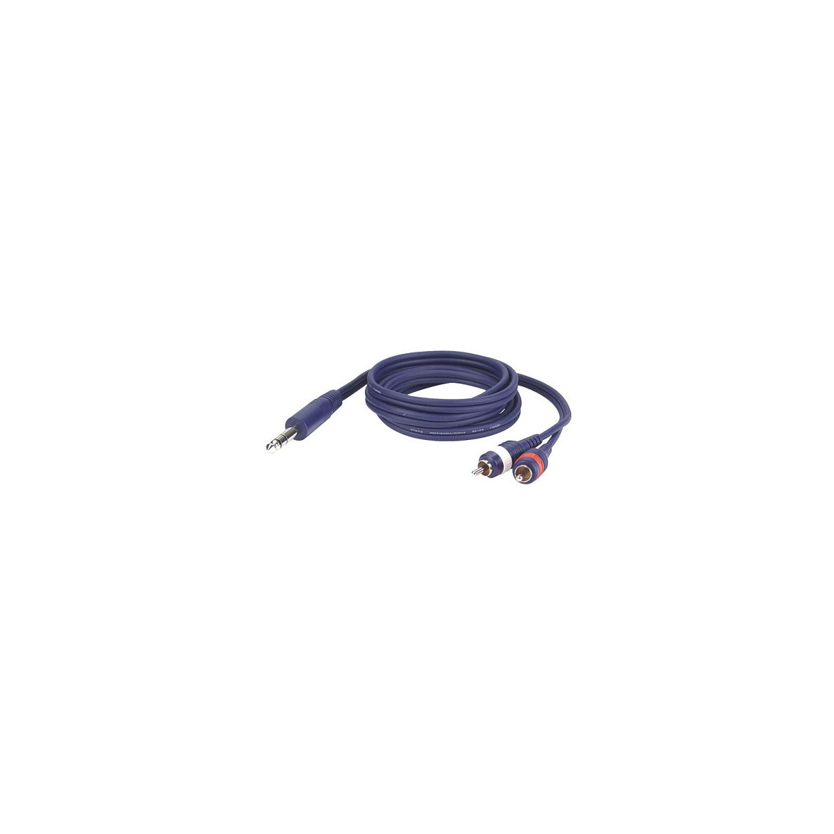 Câble Jack Rca bretelle / cordon insertion 3 m : 1 Jack mâle 6,35 stéréo / 2 Rca mâle AUDIOPHONY