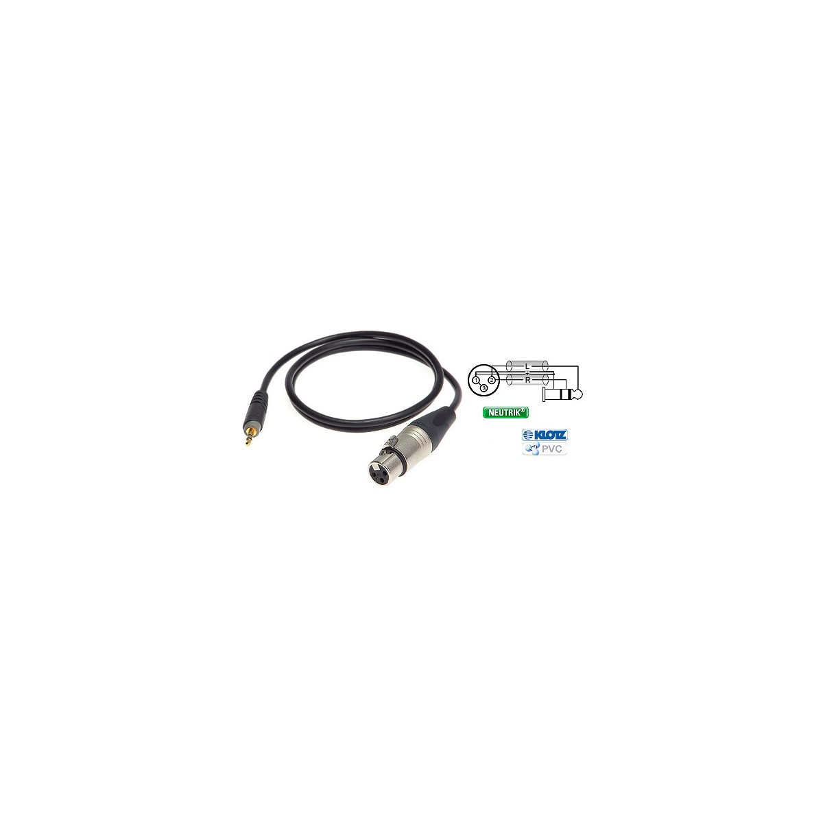 Câble XLR mini Jack 3 m : 1 Jack mâle stéréo 3,5 / 1 Xlr femelle KLOTZ / Haute Qualité