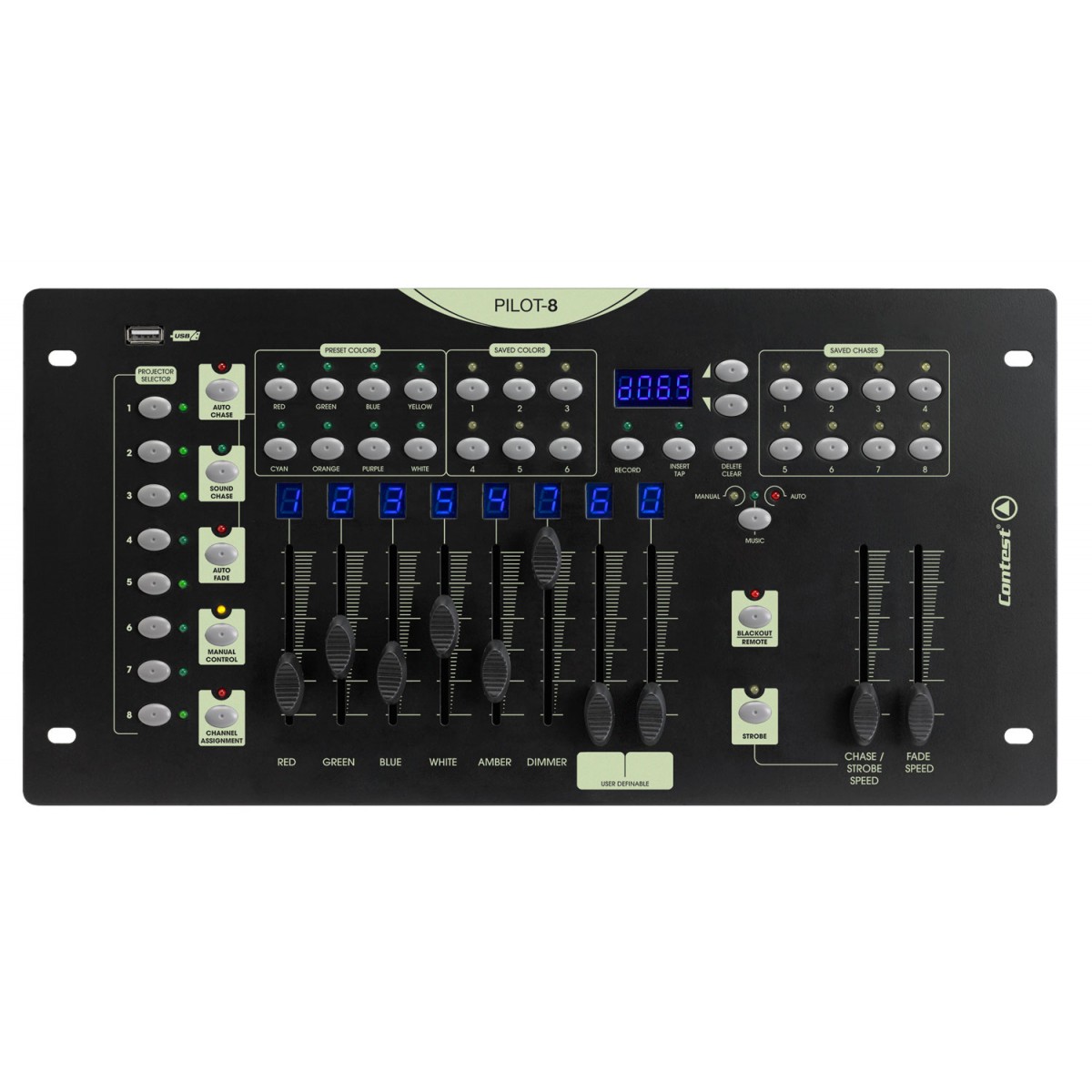 Contrôleur lumière DMX, CONTEST DMX PILOT 8 Contrôleur programmable 8 x 8 canaux
