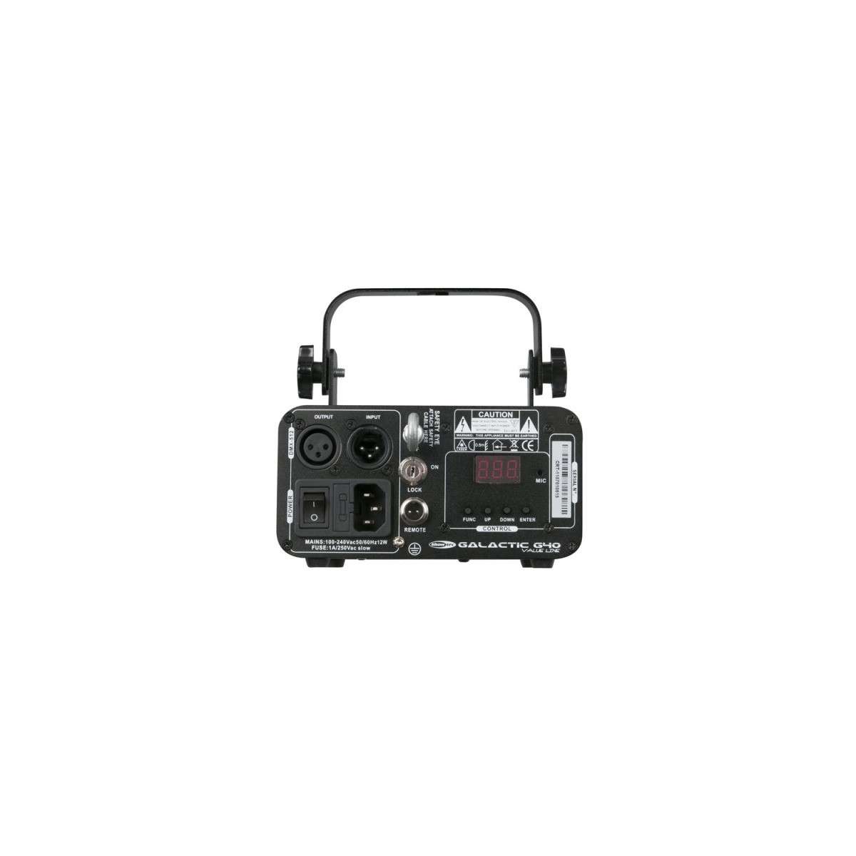 Le G40 est le laser vert simple de la gamme Galactic Venue. Il est dote d'une diode laser 532nm de 40mW. Tout comme le B300, il dispose de 8 canaux DMX et de 32 motifs differents.