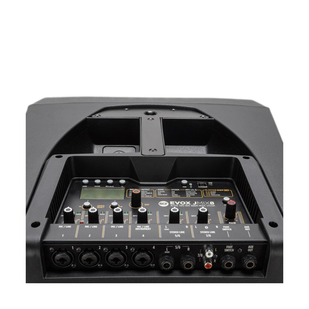 RCF fait faire un pas en avant aux séries EVOX J en équipant leur système d’une table de mixage numérique à 8 pistes. L’innovant DSP Z.CORE embarqué offre bien plus que des fonctions complètes de mixage ; Il intègre également des instruments haut de gamme d’effets et de simulationS d’ampli. Une app EVOX compatible avec les systèmes d’exploitation iOS et Android permet de contrôler le JMIX8. Avec l’ajout d’une passerelle audio Bluetooth et d’une prise Hi-Z, l’EVOX JMIX8 associe la qualité et la fiabilité des amplis et transducteurs RCF, grâce à une puissante table de mixage numérique 8 pistes, avec possibilité de commande à distance.