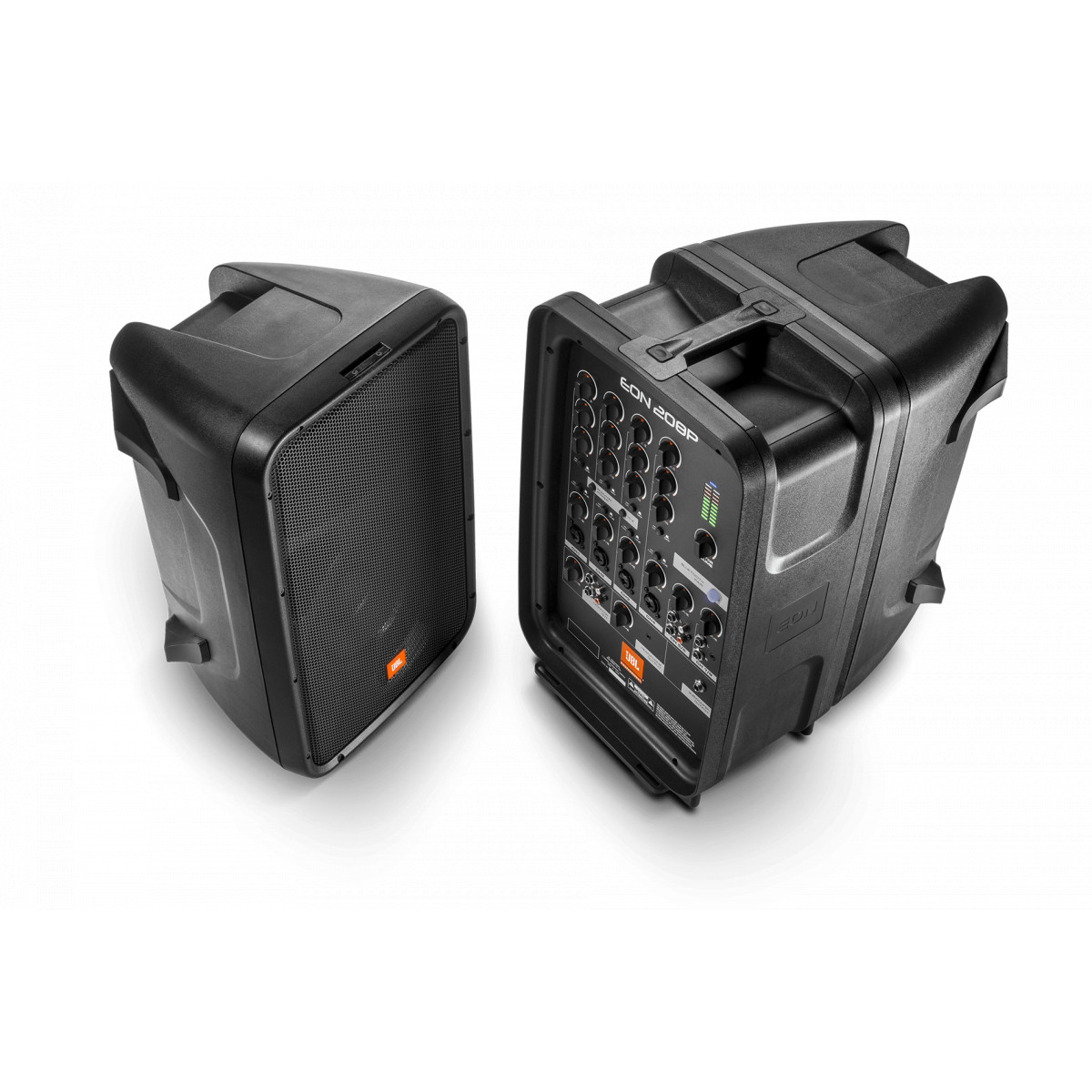 Amenez le son légendaire JBL sur votre scène avec le système de diffusion portable tout-en-un EON208P. Bien protégé par un design à l'épreuve des chocs, l'EON208P vous permet d'avoir le son lors de vos performances, meetings ou événements. Le mélangeur 8 canaux détachable propose des entrées microphones, instruments et sources au niveau ligne, tandis que les 2 haut-parleurs 2 voies 8" permettent d'assurer une excellente couverture sonore stéréo. La connectivité Bluetooth permet de streamer de l'audio à partir de votre appareil mobile. Et grâce à ses 300 watts de puissance, vous aurez assez de volume pour être entendu fort et clair. De plus, sa forme compacte et son poids réduit permettent de le transporter aisément : on peut même porter le système d'une main !