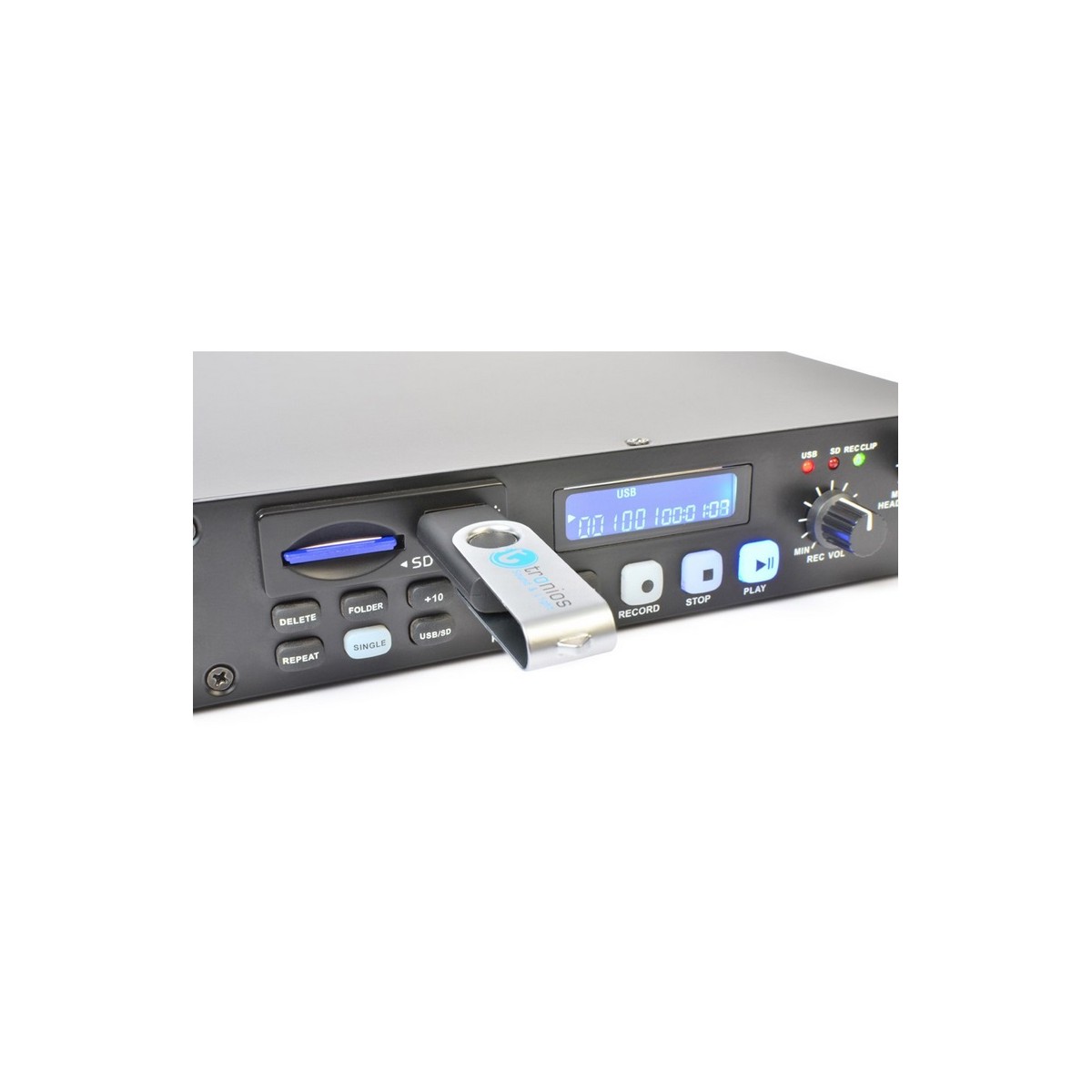 Un lecteur / enregistreur compact, digital, 19 pouces, agréable à utiliser avec double port USB et insert SD et CD. Conçu pour de nombreuses applications où un son stable est nécessaire. La fonction enregistrement et d'autres fonctions comme Cue et Pitch, 'pouces +10 pouces et programme, répétition Signle et Folder ... font de ce lecteur un appareil parfait pour une utilisation dans des discothèques, bars, cafés, clubs, à la maison ...