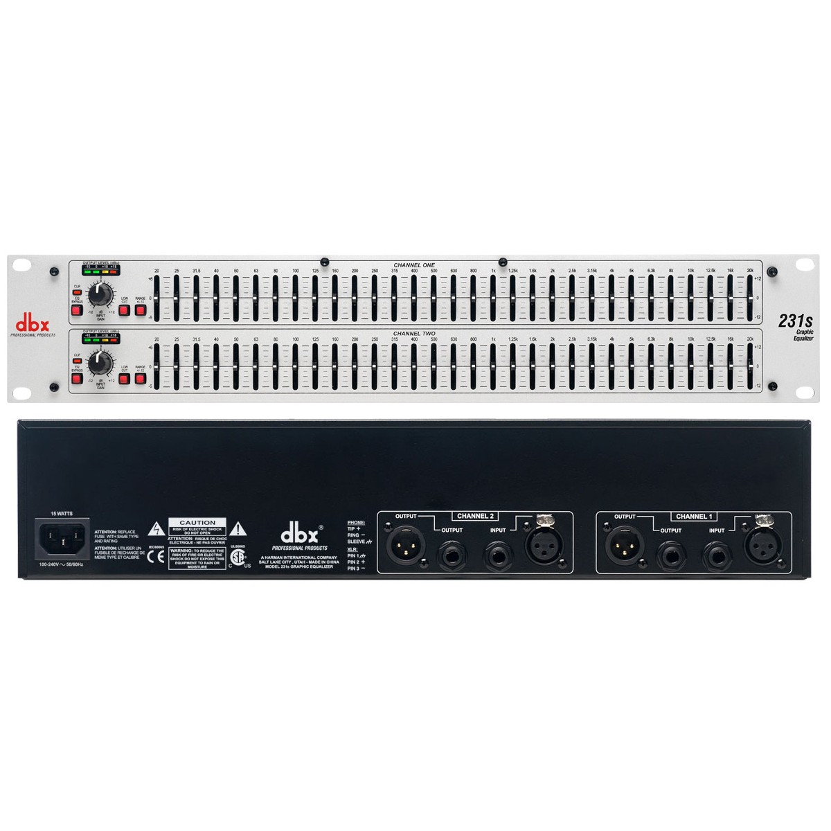 DBX 231S / Equaliseur graphique / offre un gain d'entrée de +12 dB, des gains ou des atténuations par bandes commutables entre +6 ou +12 dB, des entrées/sorties sur connecteur XLR et sur Jack 6,35 mm, des faders de 20 mm, une interface utilisateur intuitive et un contrôle des niveaux complet / Grâce à leur étonnante réponse en fréquence de 10 Hz à 50 kHz, leur gamme dynamique de 108 dB et leur transformateur torique, les appareils de la série 2 représentent une avancée majeure dans l'amélioration de la qualité des correcteurs graphiques d'entrée de gamme / Rack 19 pouces / 2 U (89 mm)
