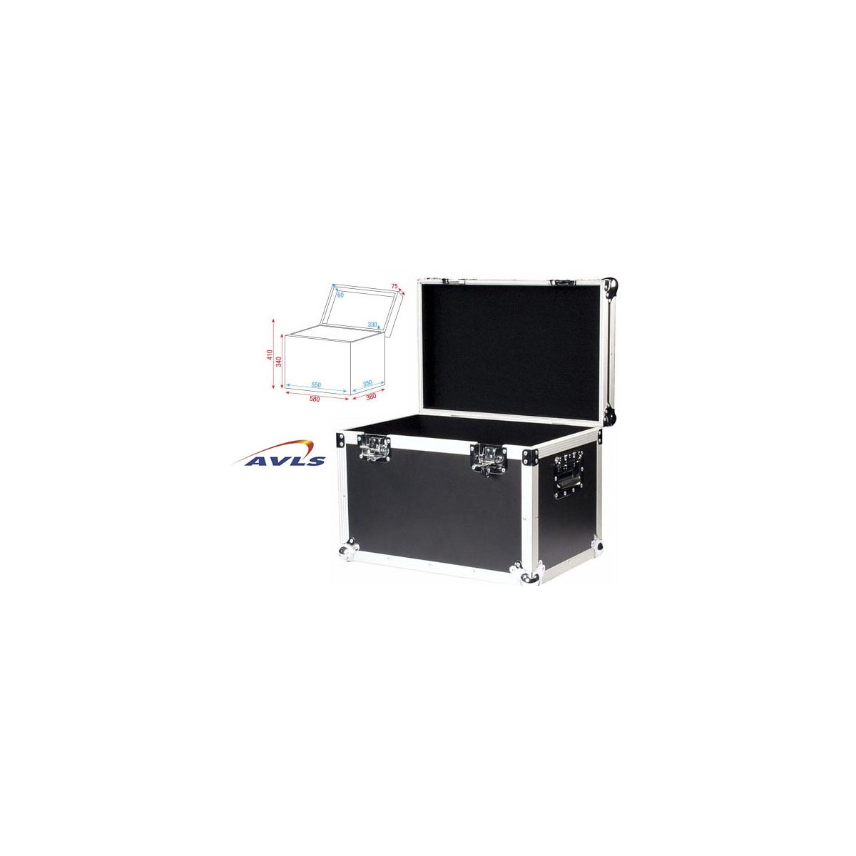 Malle de transport Flight case Fabrication robuste en bois multiplis avec 2 poignées encastrées latérales et 2 fermetures papillons encastrées / Poids : 11,7 kgs