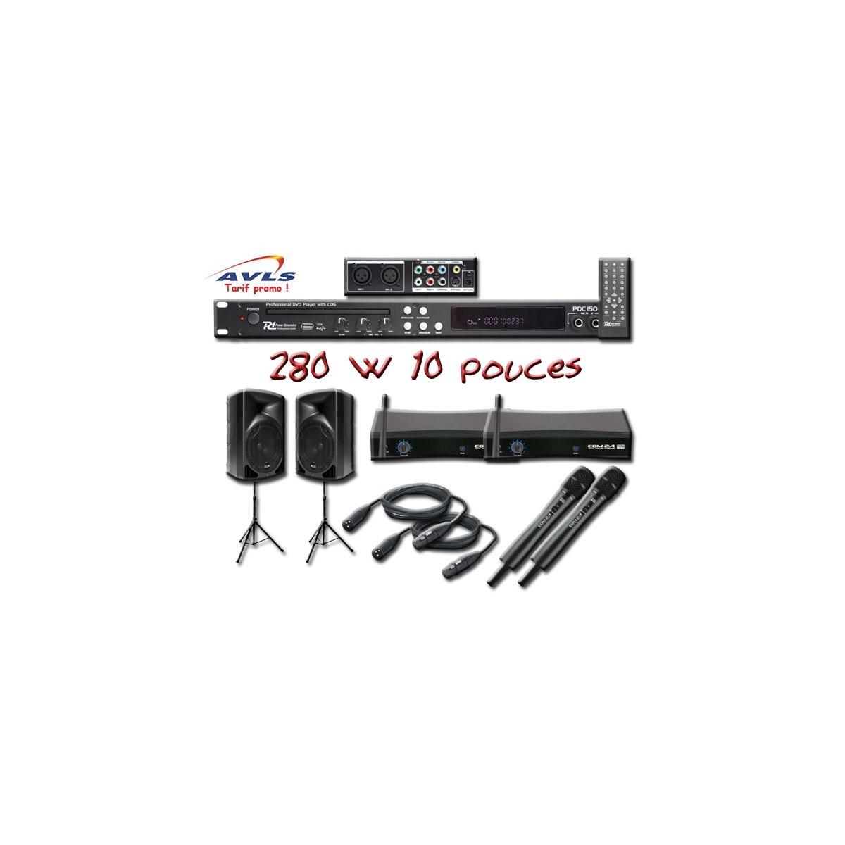 PACK 8 KARAOKE 280W 2 Enceintes 10 pouces 140 w + 2 micros HF 2,4 Ghz + 1 lecteur DVD