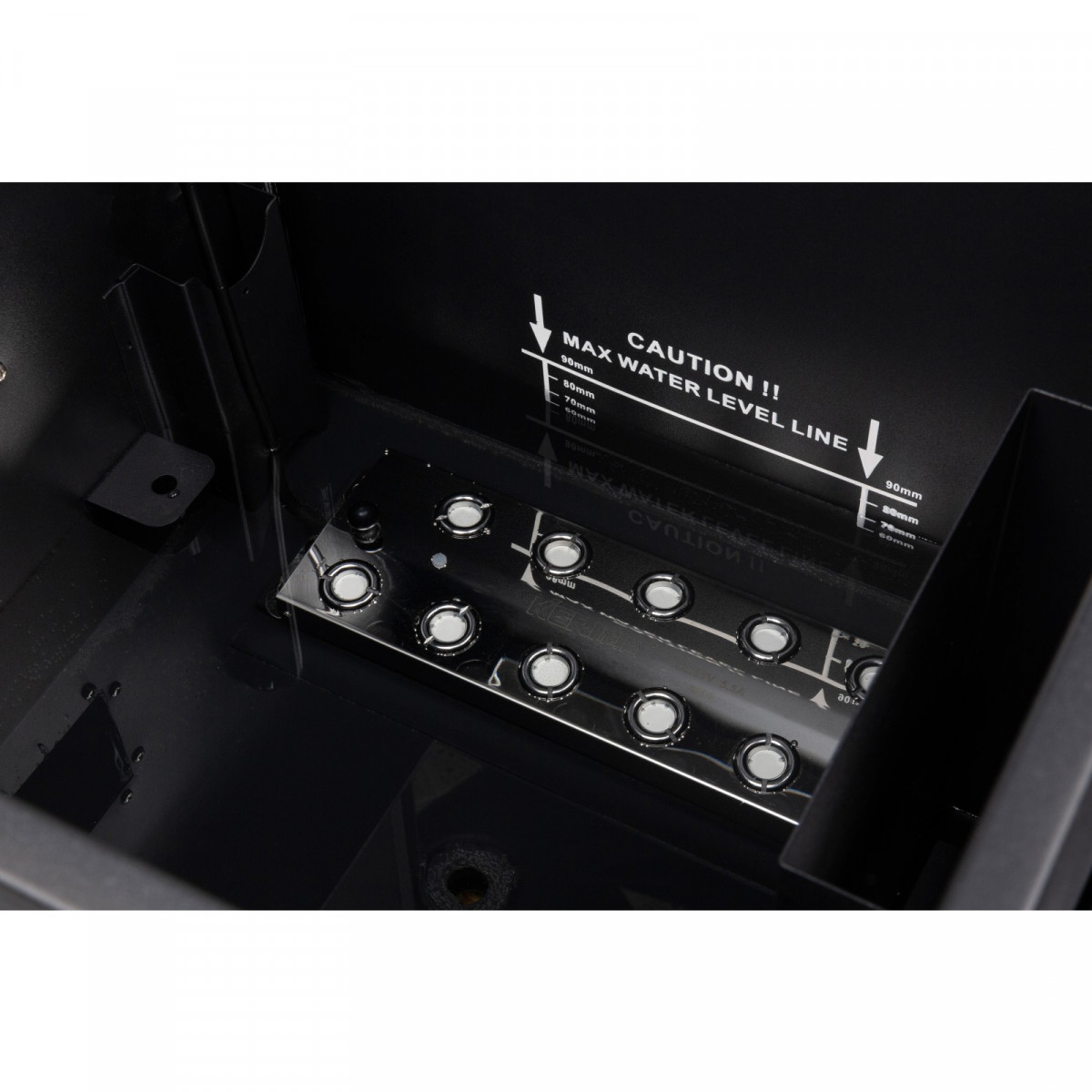 Deux puissants éléments à ultrasons convertissent le mélange de liquide de fumée et d’eau distillée en une grande quantité de magnifique brouillard au ras du sol.