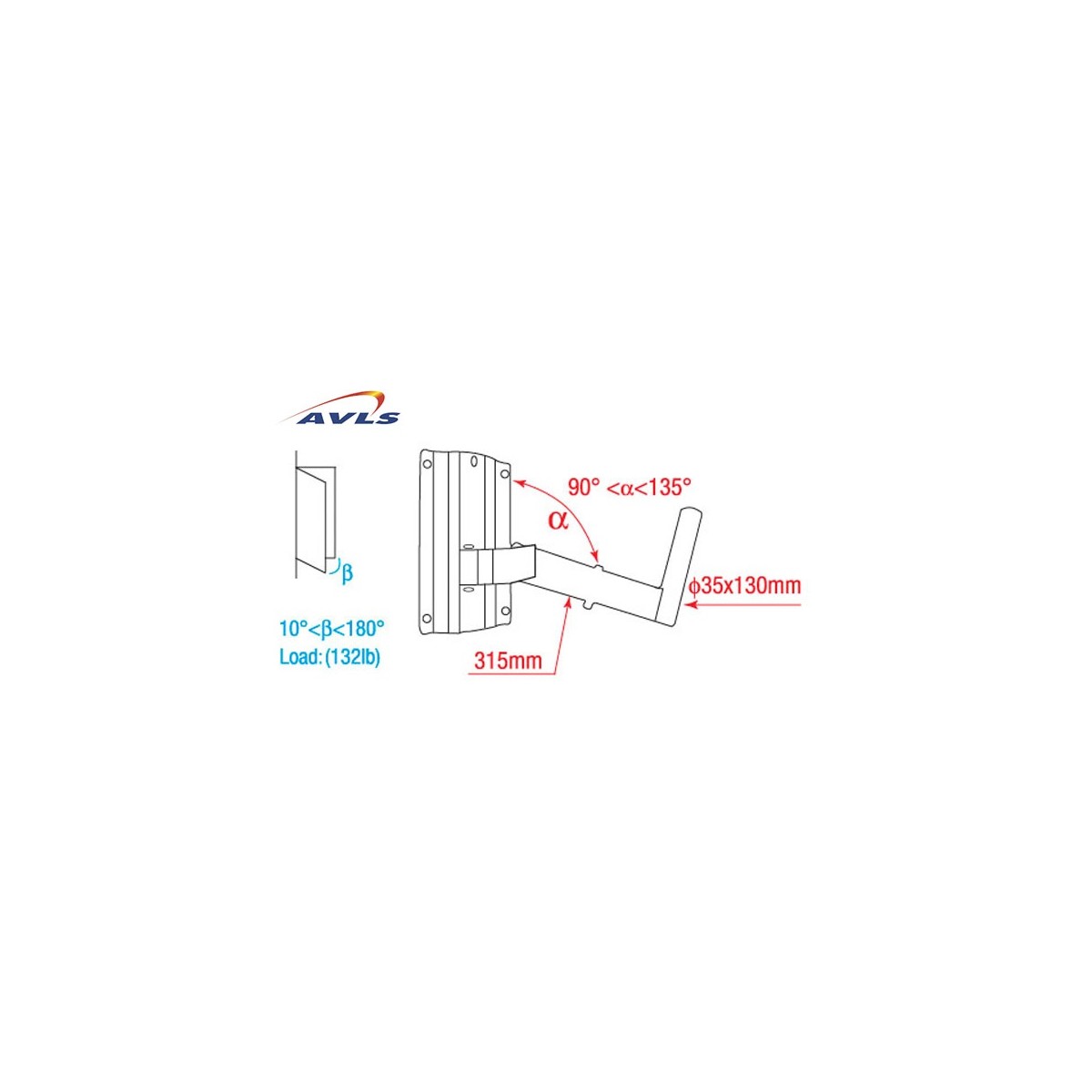 AVLS Support enceinte charge 30 Kgs inclinable haut bas