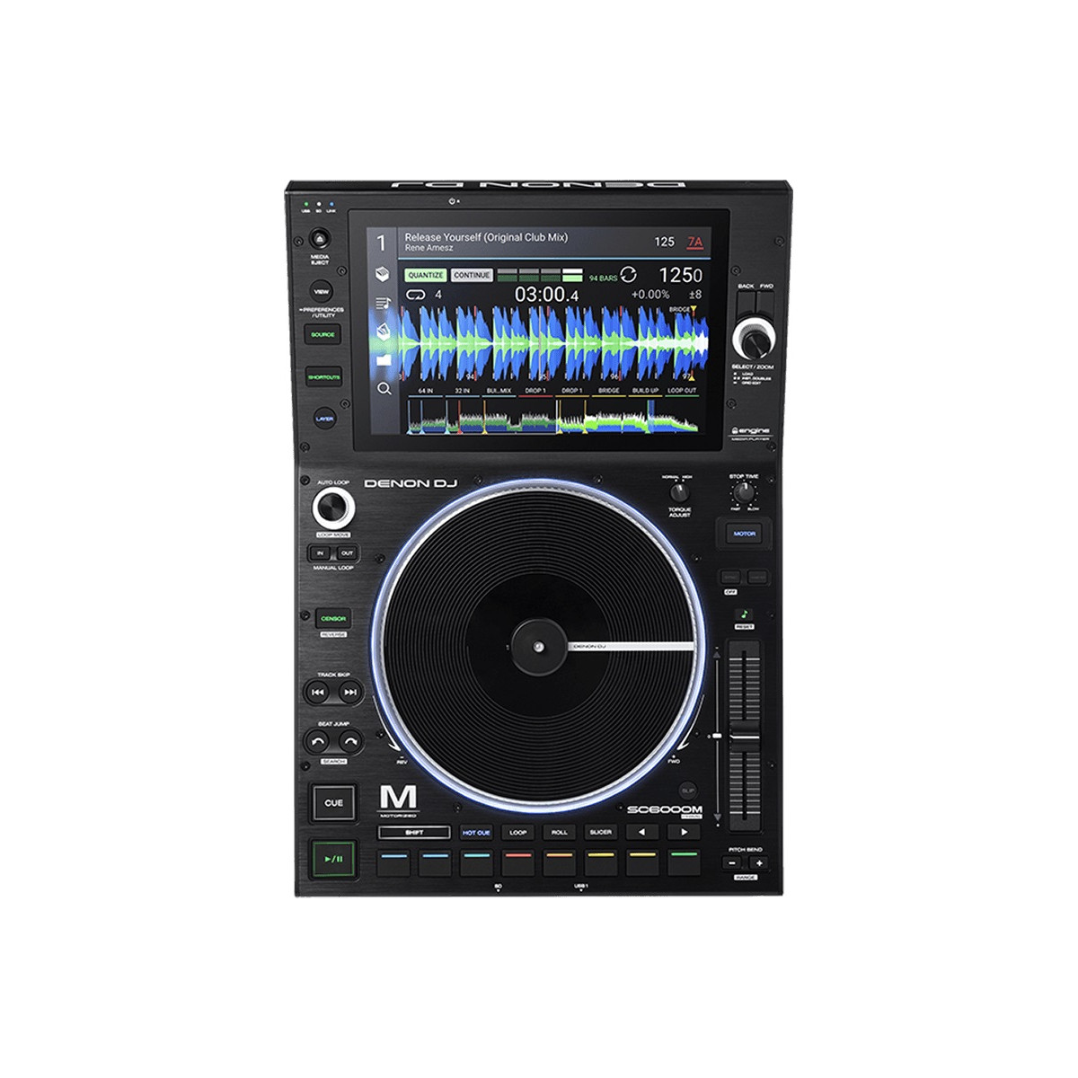 Le SC6000M est, par essence, un lecteur média DJ SC6000 Prime surmonté d'un véritable plateau en fonte d'aluminium motorisé de 8,5’’, au couple réglable, offrant une résolution de 3600 points par rotation pour une précision sans égal. Tout cela combiné à un vinyle dont la tension est ajustable pour le contrôle du slip/scratch et à une rotation mécanique réelle entre vos doigts, ce lecteur fait la promesse d’une expérience tactile et sensorielle unique pour les DJ.