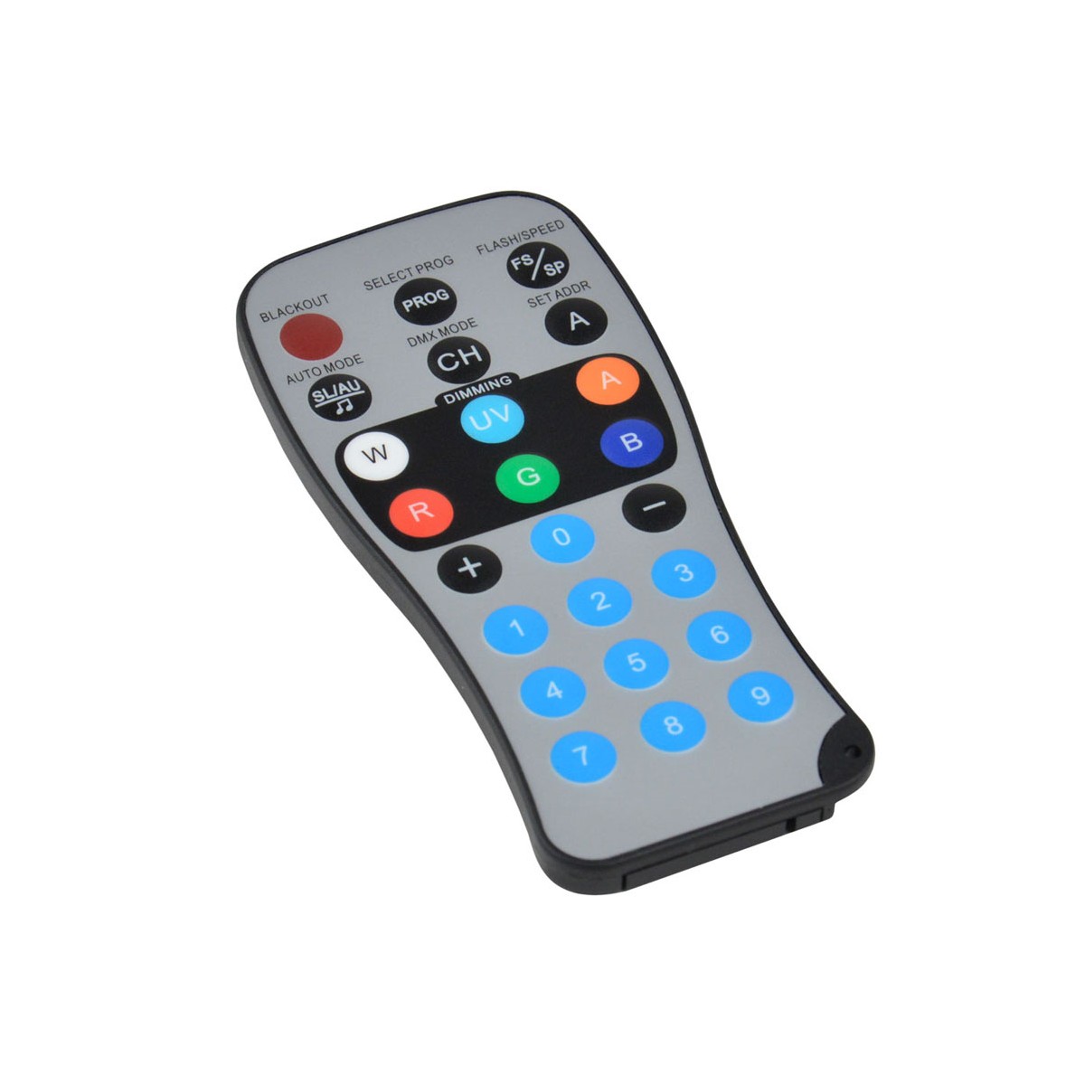 En DMX, sa charte est adaptable de 2 à 9 canaux. En Auto, vous avez accès à de nombreuses macros de couleurs à vitesse variable. Vous pouvez même créer votre propre programme et le restituer à la vitesse que vous voulez.