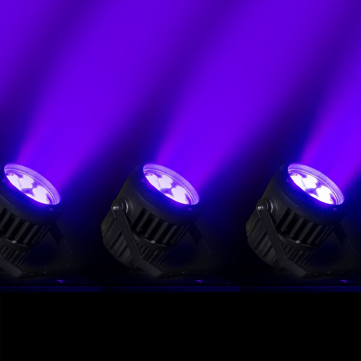 Le PAR alu BWA63 est doté de 6 LEDs 3 W 3-in-1 pour un rendement lumineux étonnant. Son fonctionnement est très simple, il suffit de le brancher sur une prise de courant et vous êtes prêt ! Ce projecteur en aluminium, pour utilisations en intérieur et extérieur fonctionne de manière totalement autonome et est contrôlé par des programmes automatiques intégrés ou via le mode automatique. Il n'y a pas de ventilateur de refroidissement interne, ce qui signifie un bruit absolument nul. C'est un effet parfait pour les DJ mobiles, les performances en direct et toutes les autres applications, mais il peut également être monté dans un plan d'éclairage intérieur/extérieur fixe pour les zones de bowling, les discothèques, les clubs, etc.