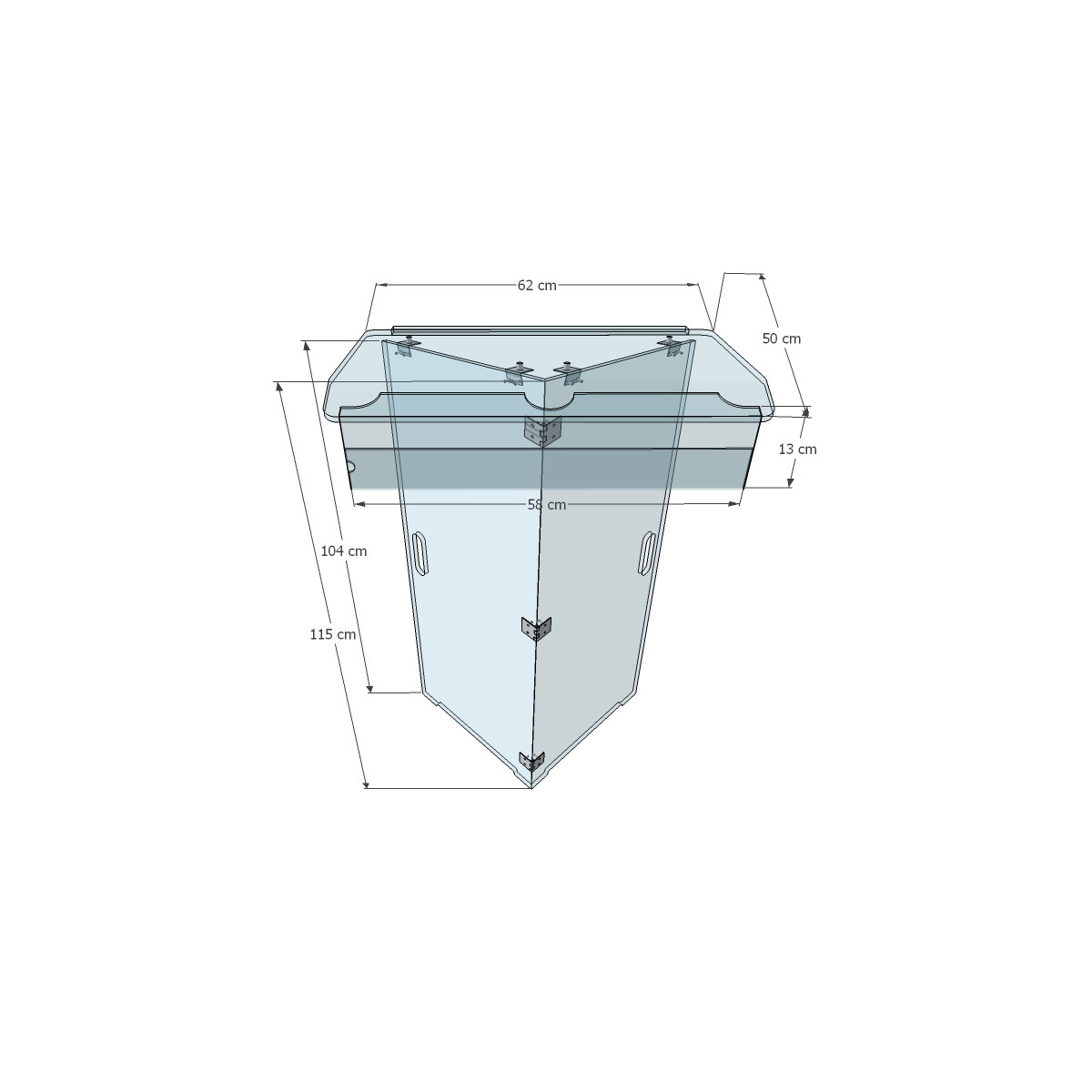 Pupitre plexiglass Pupitre de conférence, pupitre orateur Sans sono ni microphone Réalisé en Altuglas cristal Ce pupitre offre une ligne particulièrement pure Pour le transport, ce pupitre est démontable avec seulement une pièce de monnaie Charnières en laiton chromé Les documents sont retenus par une réglette et une surface horizontale est ménagée dans la partie frontale Devant un bandeau pour calicot ou bristol (58 x 13 cm) est amovible en 2 positions : dessus ou dessous Hauteur maxi 115 cm Plateau : 62 x 50 cm Fronton pour bristol 58 x 13 cm Poids : 16 kgs