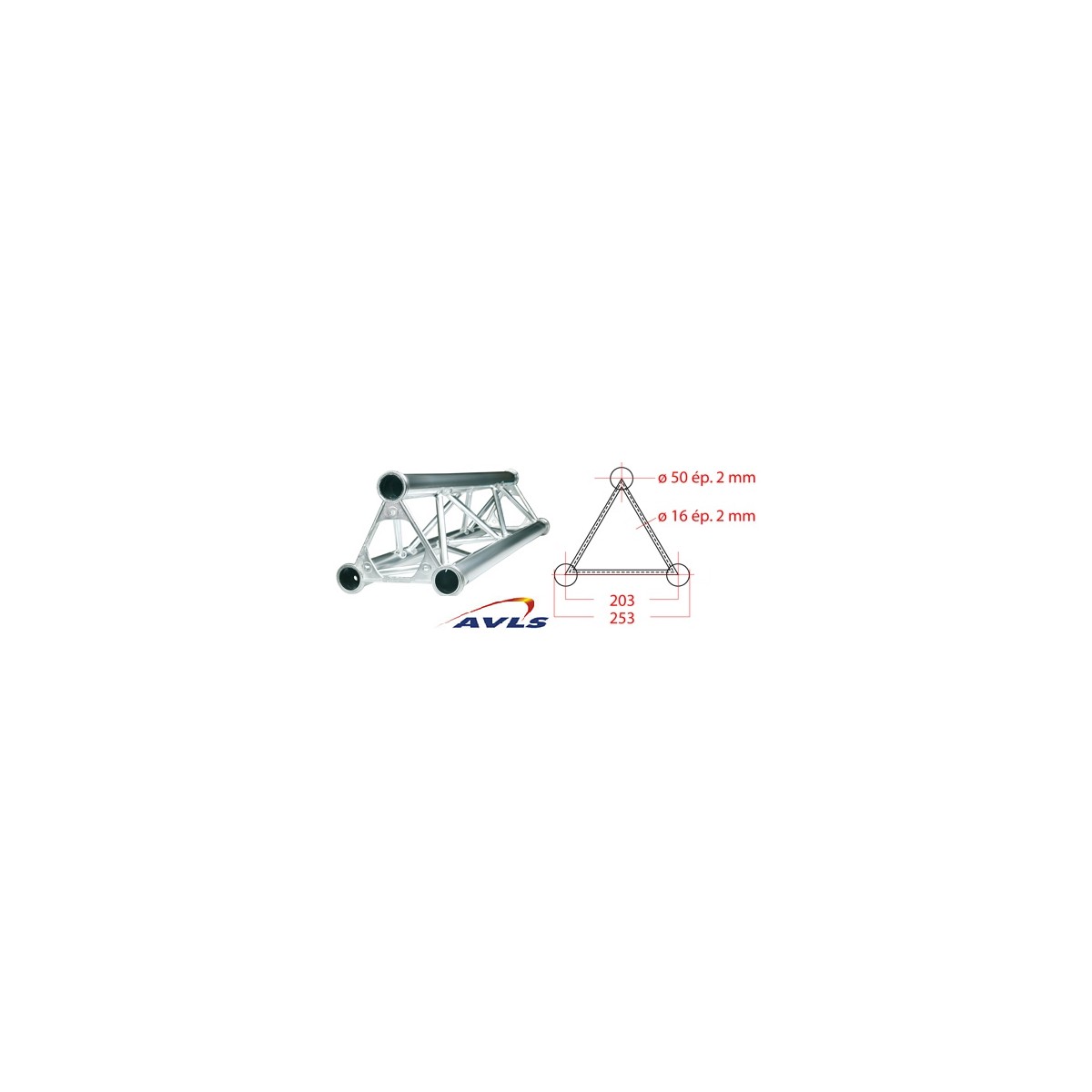 Structure alu triangle ASD section 250 mm Longueur 2 m sans kit de jonction