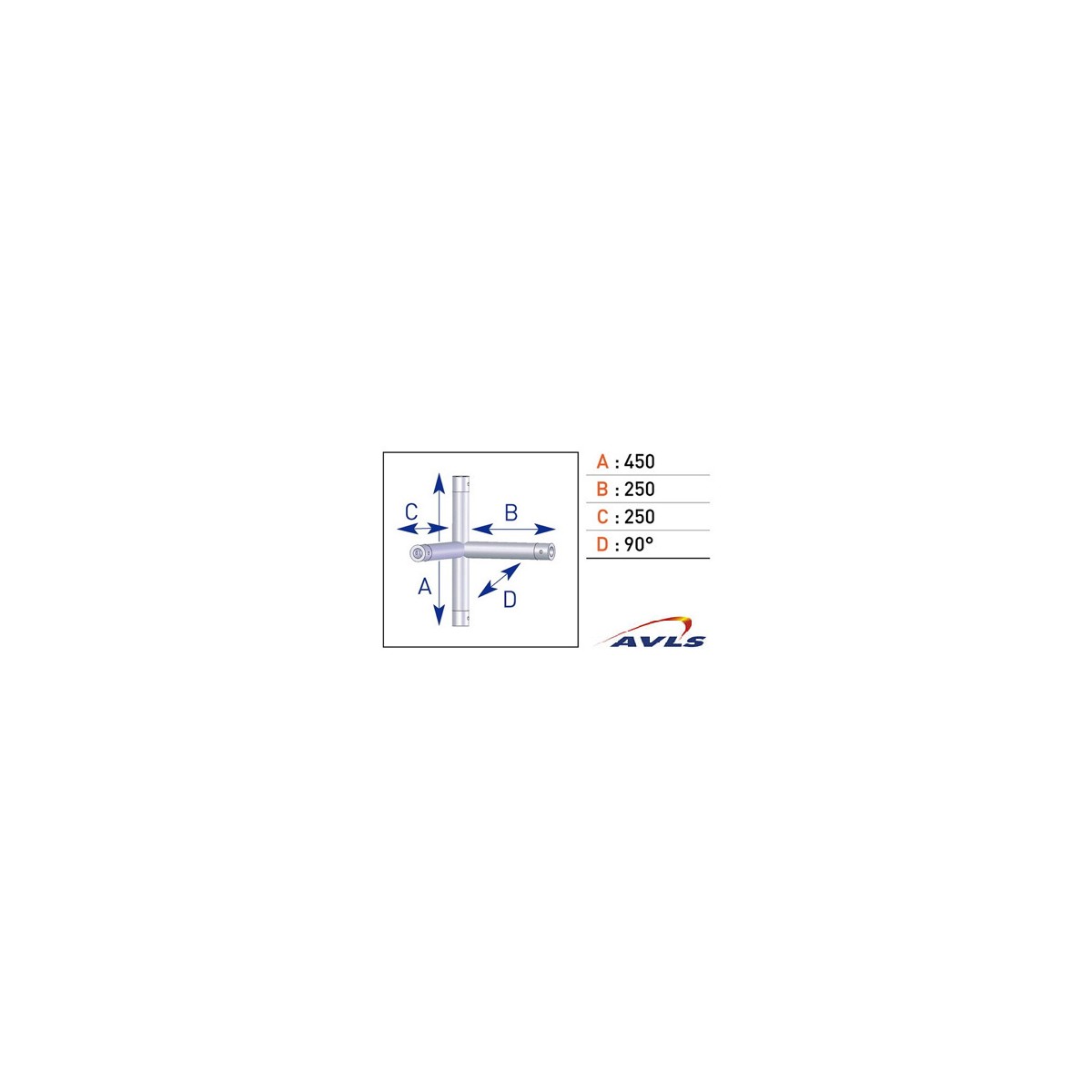Structure alu tube Angle 4 départs horizontaux & verticale gauche 90° (450 x 250 x 250 mm) pour tube 50 mm ASD