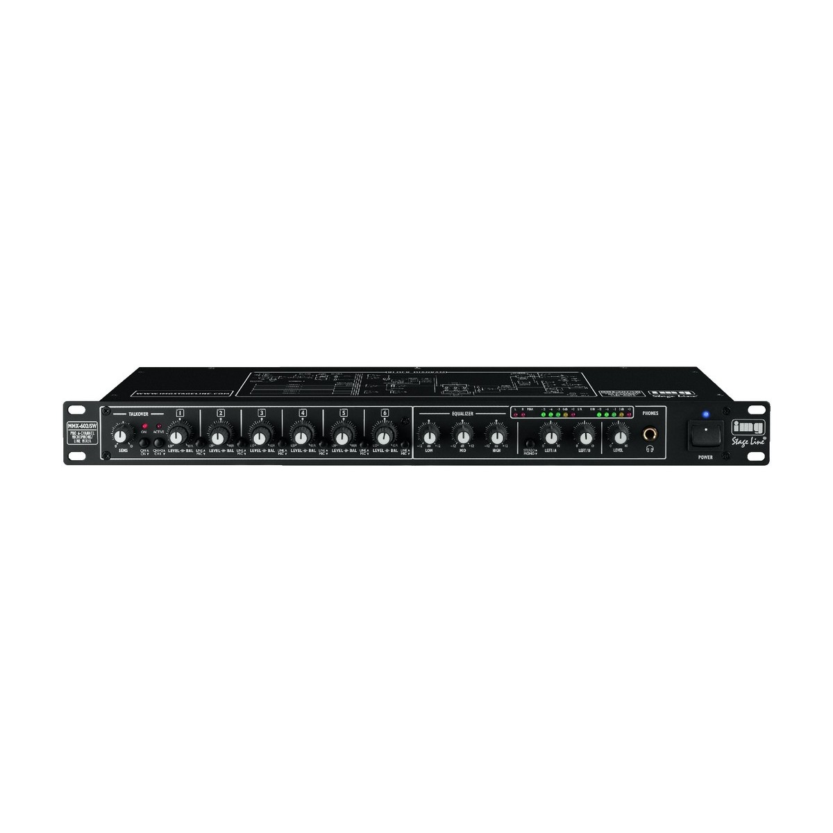 La MONACOR MMX 602 dispose de 6 entrées ligne stéréo et de 6 entrées micro mono symétriques, commutables selon vos besoins. Elle permet ainsi de connecter microphones, lecteurs audio, systèmes multimédias ou sources externes avec une grande souplesse.