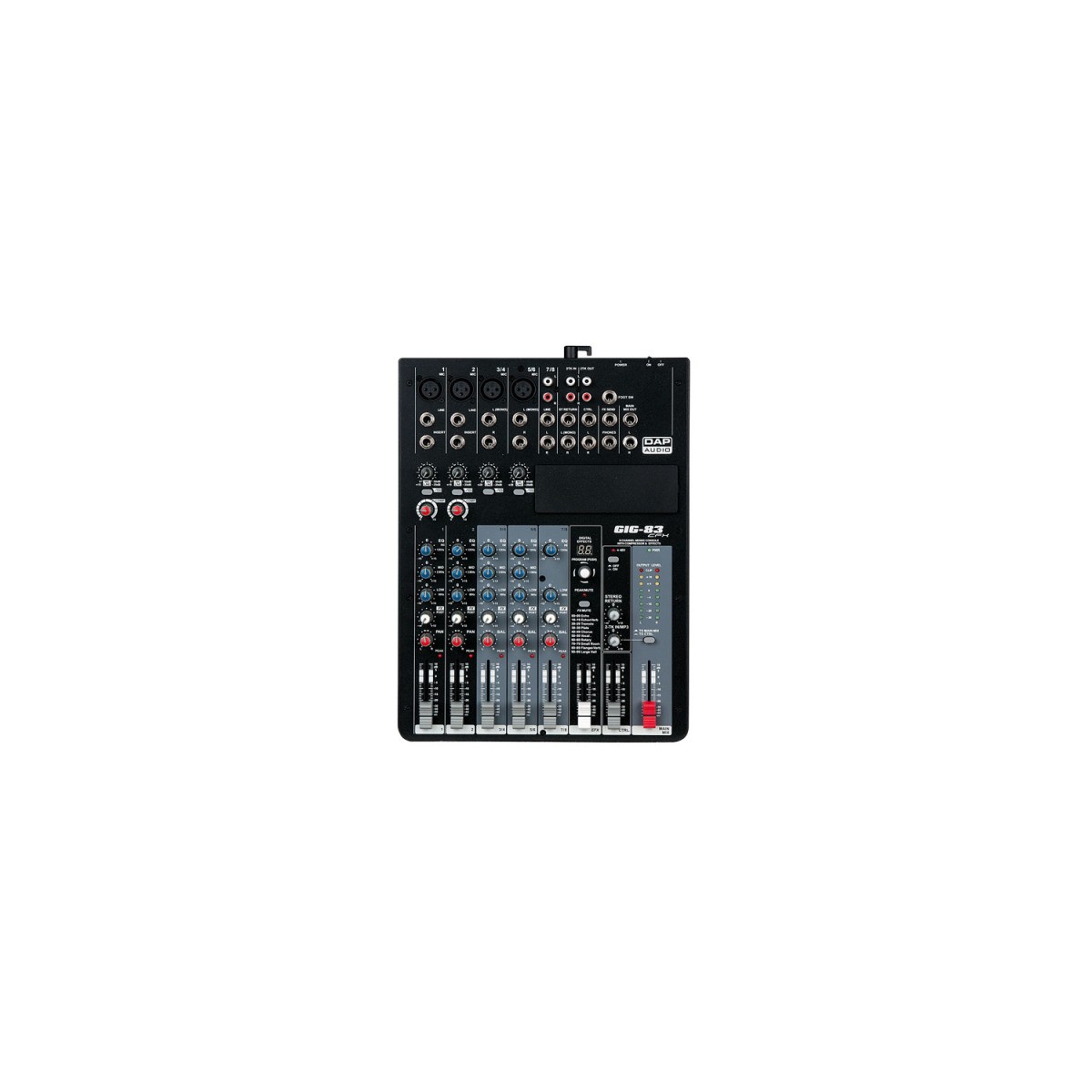 La console de mixage GIG-83 CFX est dotee de fonctionnalites dont ne disposent pas les autres appareils de sa categorie: 4 entrees mono (fournies avec des preamplis micro tres faible bruit et une alimentation fante +48V) et 3 entrees stereo. Chacune d'entre elles dispose d'un egaliseur 3 bandes (frequences basses, mediums et aigu), d'un effet DSP 24bits integre avec 100 presets, d'un contre auxilliaire, d'afficheurs de niveaux 8 segments tres precis, d'entrees bipistes assignables au mixage principal et de sorties contre/casque ou groupe.