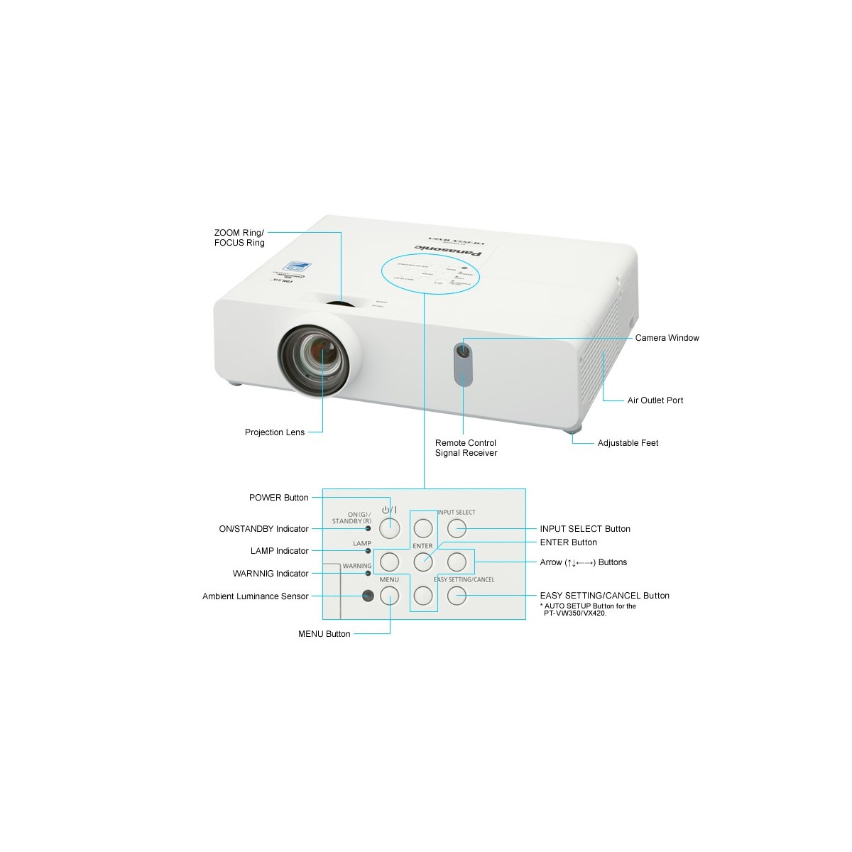 Vidéoprojecteur PANASONIC PT-VX420A XGA 1024 X 768 4500 ANSI Lumens DLP 10.000/1 Vie lampe 8000 H